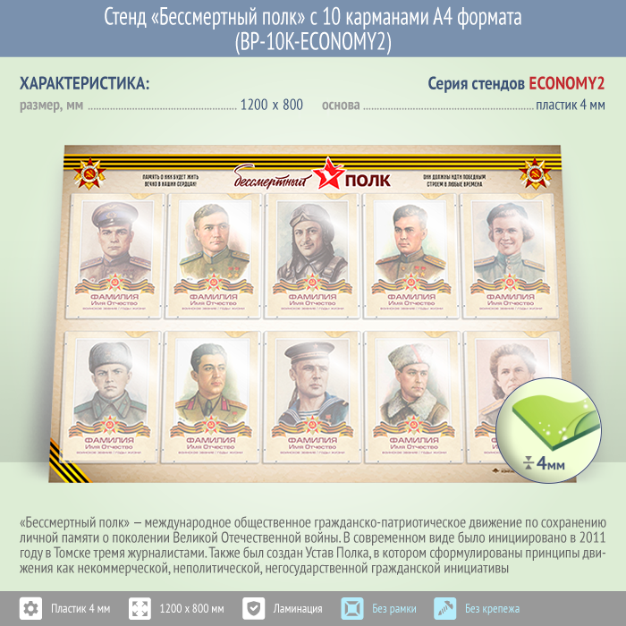 Стенд «Бессмертный полк» с 10 карманами А4 формата (BP-10K-ECONOMY2) в Нижнекамске купить