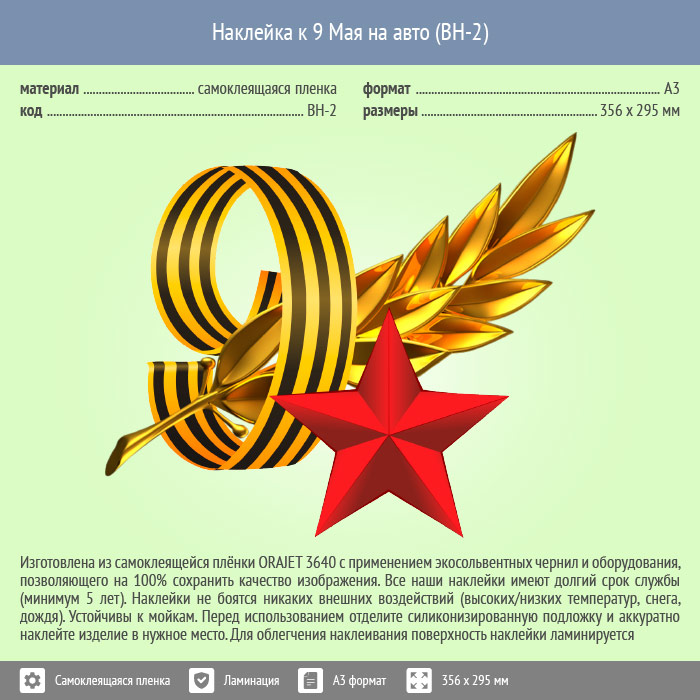 Наклейка к 9 Мая на авто А3 формата (BH-2) в Нижнекамске купить