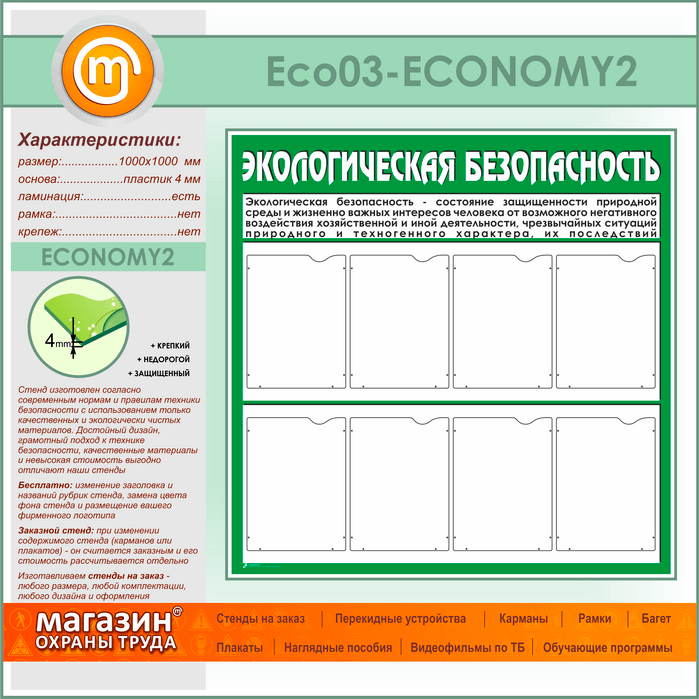 Стенд «Экологическая безопасность» с 8 карманами (ECO-03-ECONOMY2) в Нижнекамске купить