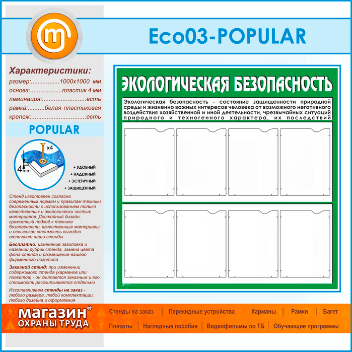Стенд «Экологическая безопасность» с 8 карманами (ECO-03-POPULAR) в Нижнекамске купить