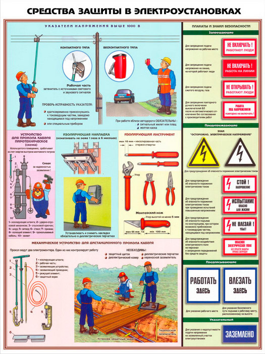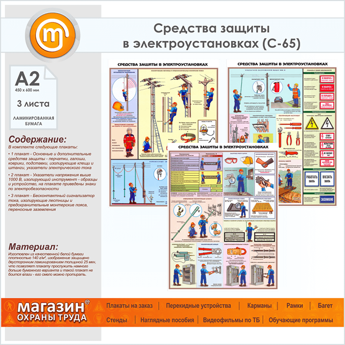 Плакаты «Средства защиты в электроустановках» (С-65, ламинированная бумага, А2, 3 листа) в Нижнекамске купить