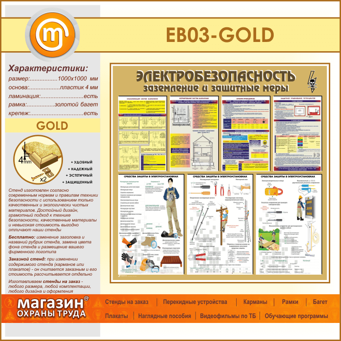 Стенд «Электробезопасность. Заземление и защитные меры» (EB-03-GOLD) в Нижнекамске купить