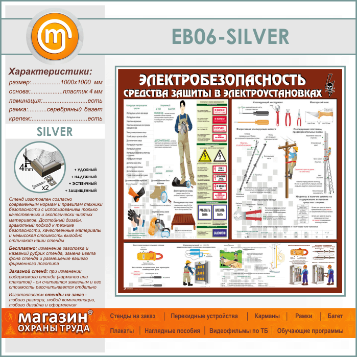 Стенд «Электробезопасность. Средства защиты в электроустановках» (EB-06-SILVER) в Нижнекамске купить
