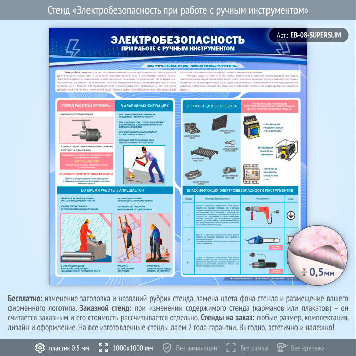 Стенд «Электробезопасность при работе с ручным инструментом» (EB-08-SUPERSLIM) в Нижнекамске купить