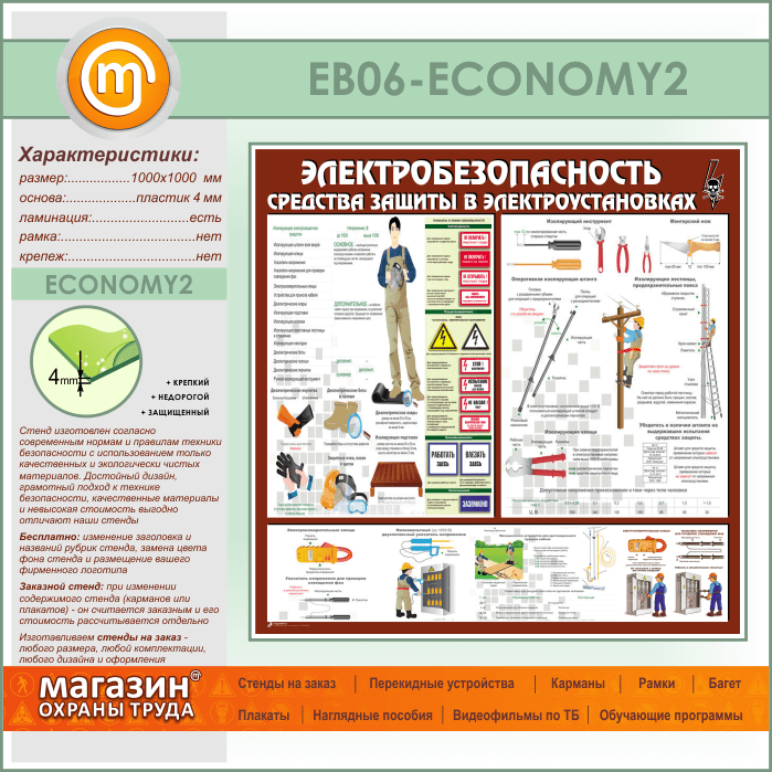 Стенд «Электробезопасность. Средства защиты в электроустановках» (EB-06-ECONOMY2) в Нижнекамске купить