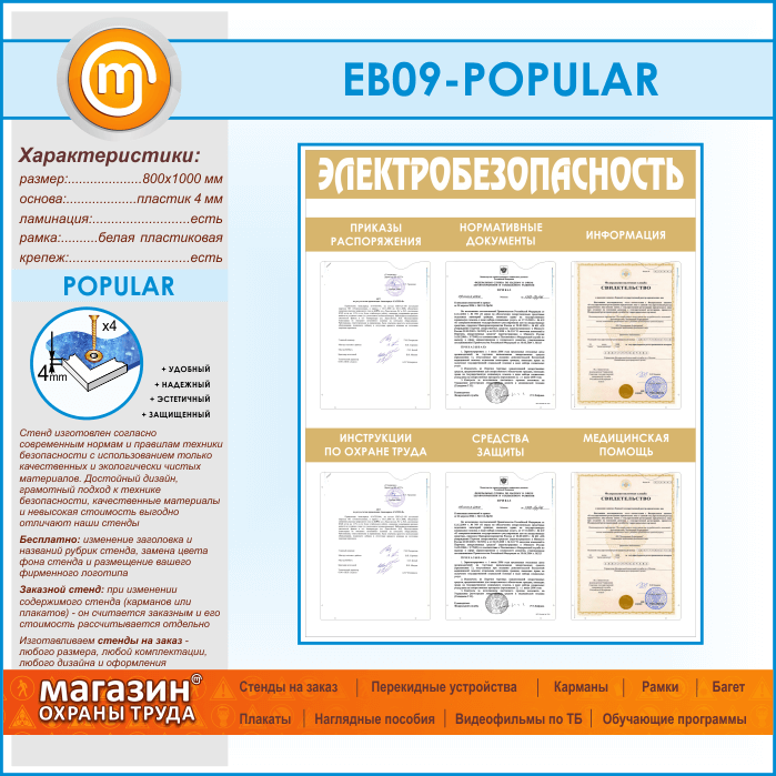 Стенд «Электробезопасность» с 6 карманами (EB-09-POPULAR) в Нижнекамске купить