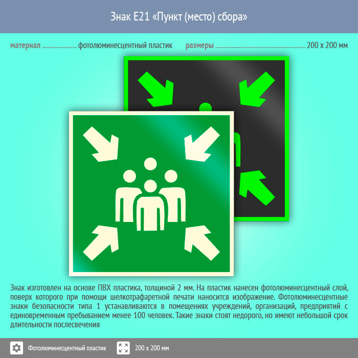 Знак E21 «Пункт (место) сбора» (фотолюминесцентный пластик, 200х200 мм) в Нижнекамске купить