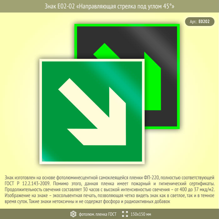 Знак E02-02 «Направляющая стрелка под углом 45°» (фотолюминесцентная пленка ГОСТ 34428-2018, 150х150 мм) в Нижнекамске купить