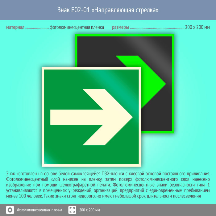 Знак E02-01 «Направляющая стрелка» (фотолюминесцентная пленка, 200х200 мм) в Нижнекамске купить