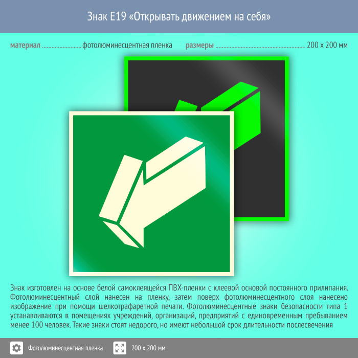 Знак E19 «Открывать движением на себя» (фотолюминесцентная пленка, 200х200 мм) в Нижнекамске купить