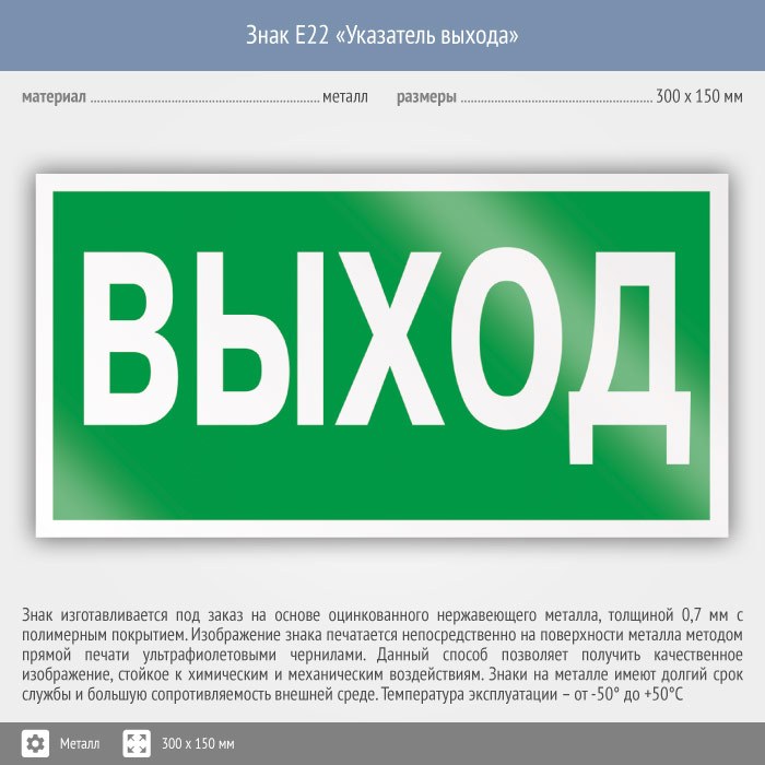 Знак E22 «Указатель выхода» (металл, 300х150 мм) в Нижнекамске купить