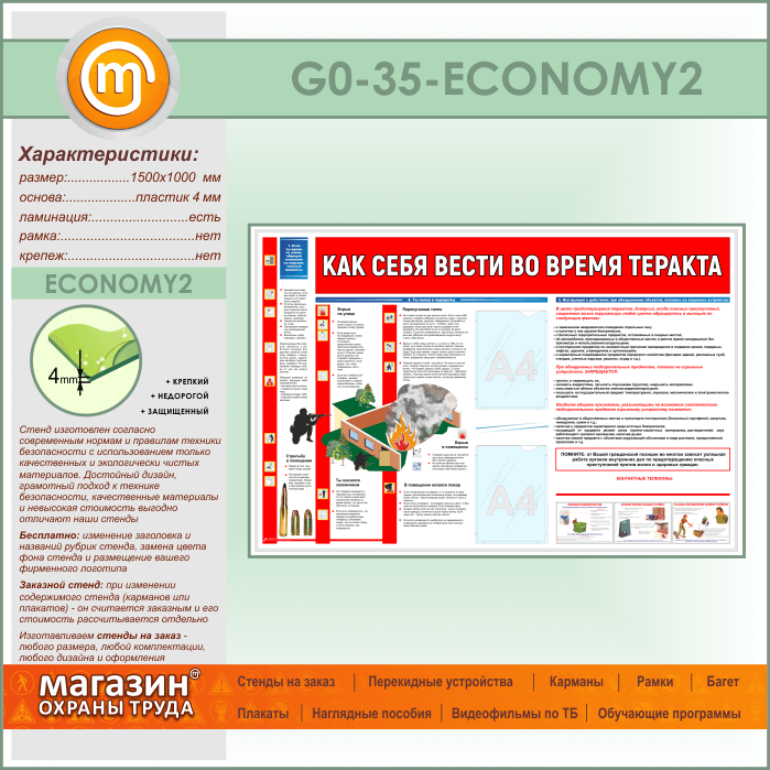 Стенд «Как себя вести во время теракта» c 2 карманами (GO-35-ECONOMY2) в Нижнекамске купить