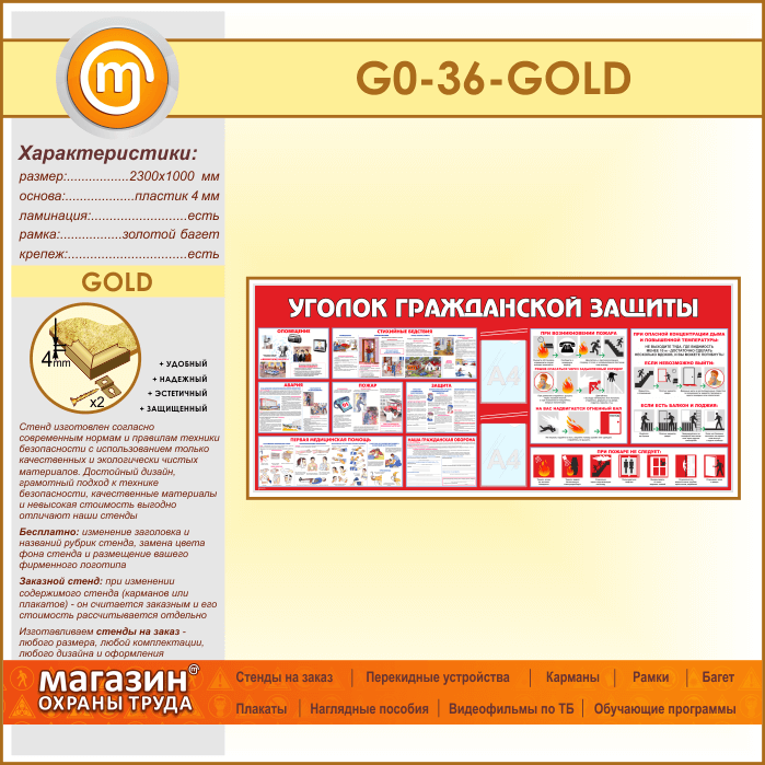 Стенд «Уголок гражданской защиты» c 2 карманами (GO-36-GOLD) в Нижнекамске купить
