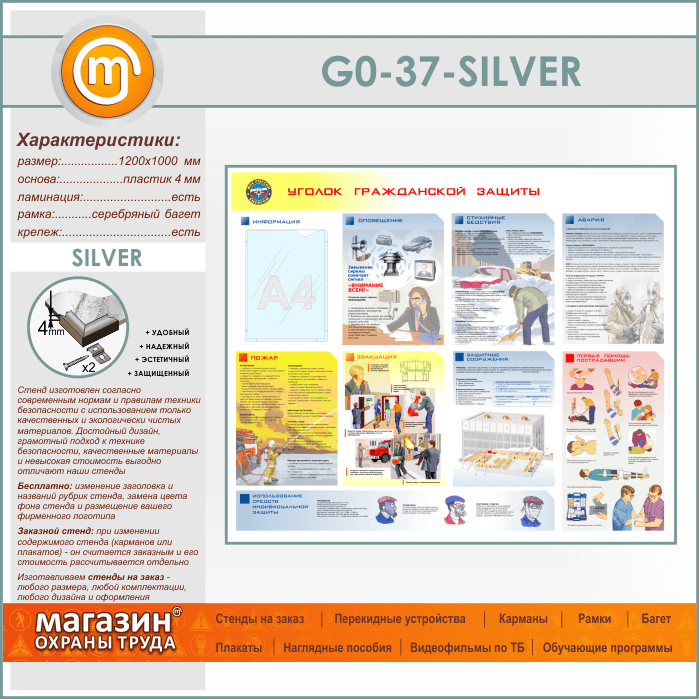 Стенд «Уголок гражданской защиты» с карманом (GO-37-SILVER) в Нижнекамске купить