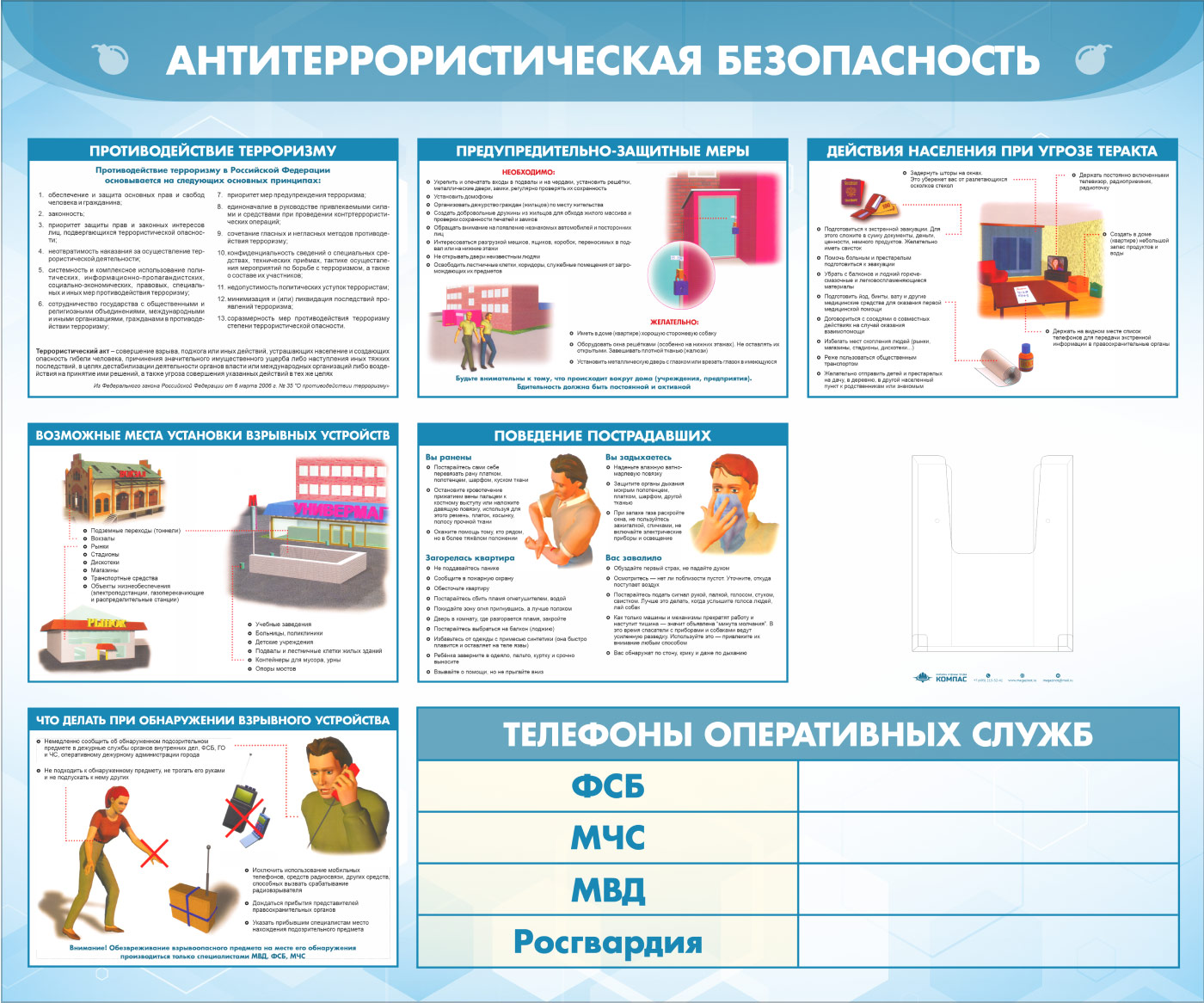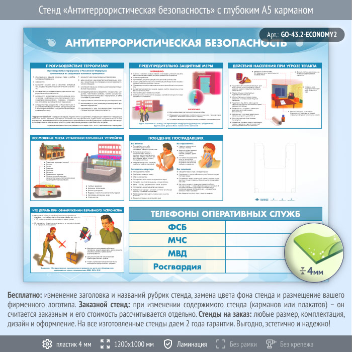 Стенд «Антитеррористическая безопасность» с глубоким А5 карманом (GO-43.2-ECONOMY2) в Нижнекамске купить