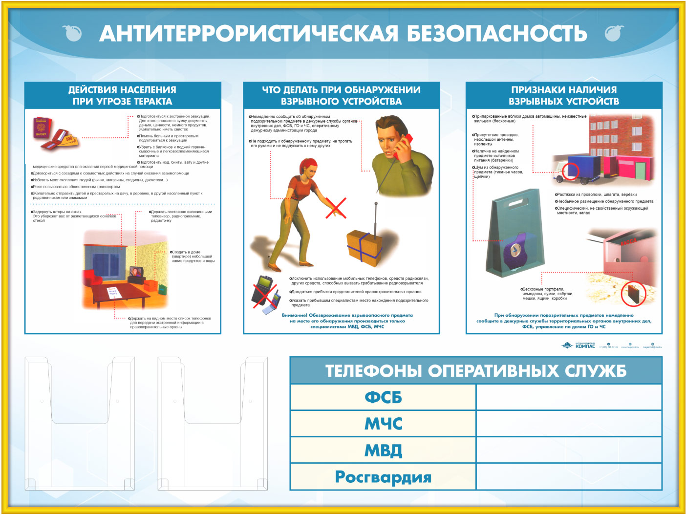 Стенд «Антитеррористическая безопасность» с 2-мя глубокими А5 карманами (GO-43.3-GOLD) в Нижнекамске купить