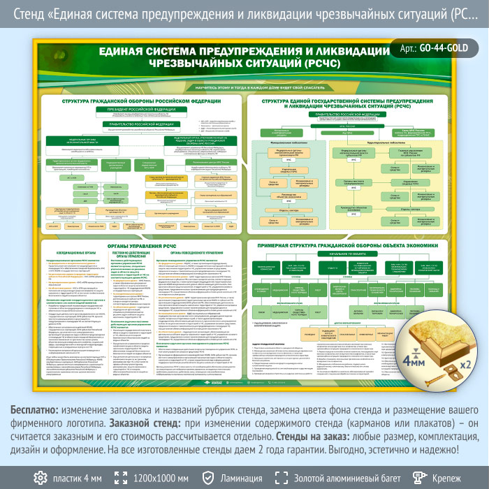 Стенд «Единая система предупреждения и ликвидации чрезвычайных ситуаций (РСЧС)» (GO-44-GOLD) в Нижнекамске купить