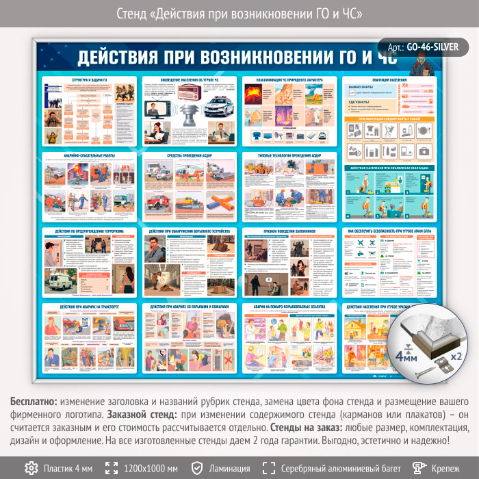 Стенд «Действия при возникновении ГО и ЧС» (GO-46-SILVER) в Нижнекамске купить