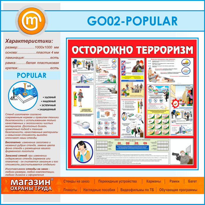 Стенд «Осторожно терроризм!» (GO-02-POPULAR) в Нижнекамске купить