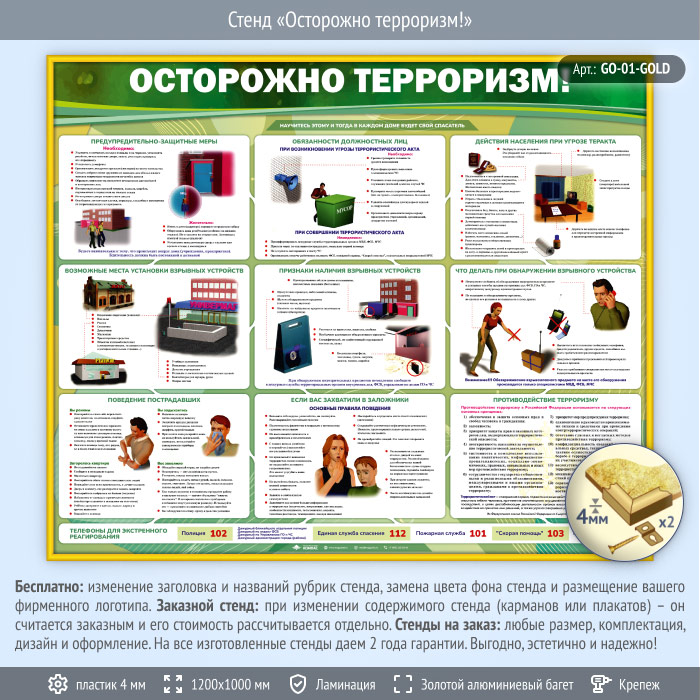 Стенд «Осторожно терроризм!» (GO-01-GOLD) в Нижнекамске купить