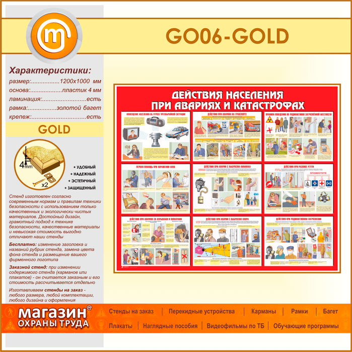 Стенд «Действия населения при авариях и катастрофах» (GO-06-GOLD) в Нижнекамске купить