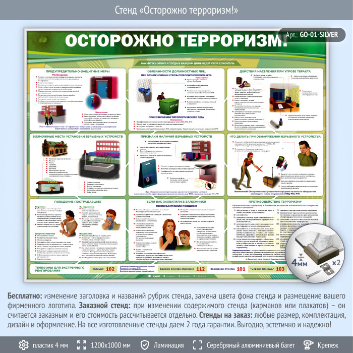 Стенд «Осторожно терроризм!» (GO-01-SILVER) в Нижнекамске купить