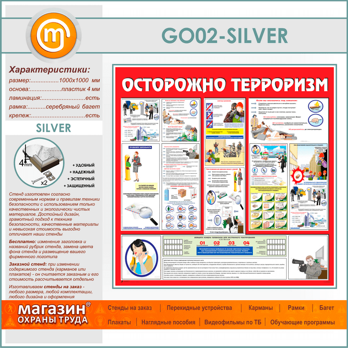 Стенд «Осторожно терроризм!» (GO-02-SILVER) в Нижнекамске купить