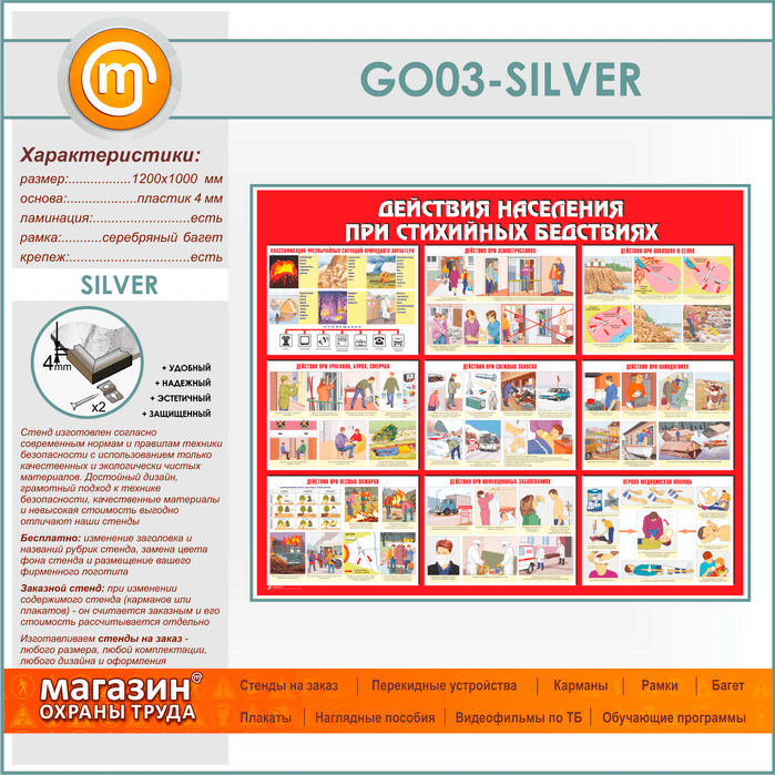 Стенд «Действия населения при стихийных бедствиях» (GO-03-SILVER) в Нижнекамске купить