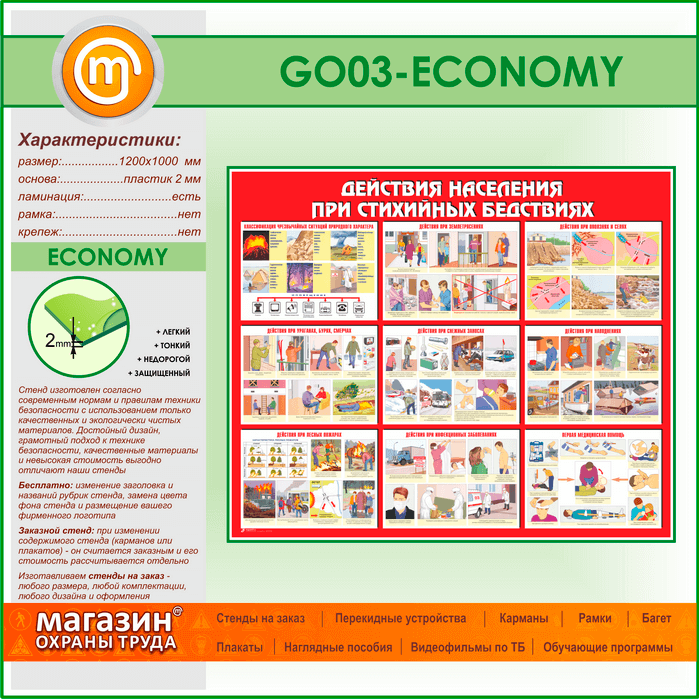 Стенд «Действия населения при стихийных бедствиях» (GO-03-ECONOMY) в Нижнекамске купить