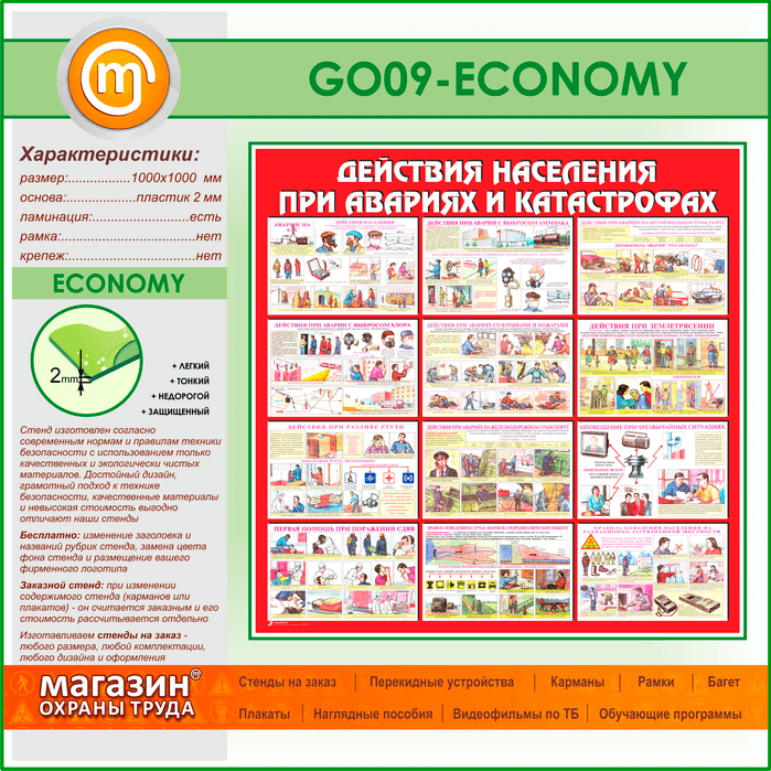 Стенд «Действия населения при авариях и катастрофах» (GO-09-ECONOMY) в Нижнекамске купить