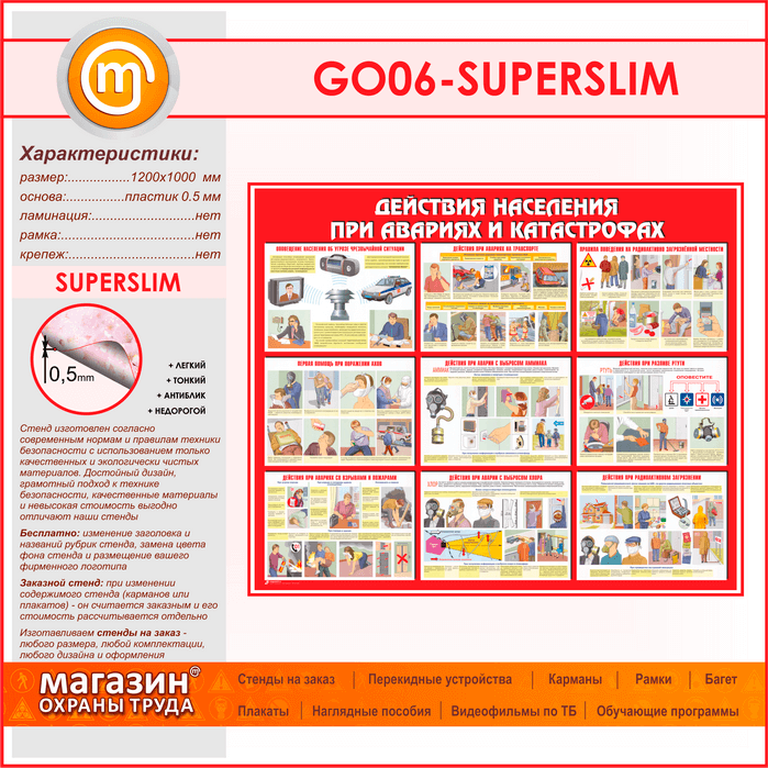 Стенд «Действия населения при авариях и катастрофах» (GO-06-SUPERSLIM) в Нижнекамске купить