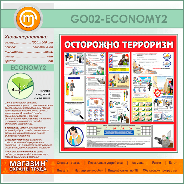 Стенд «Осторожно терроризм!» (GO-02-ECONOMY2) в Нижнекамске купить