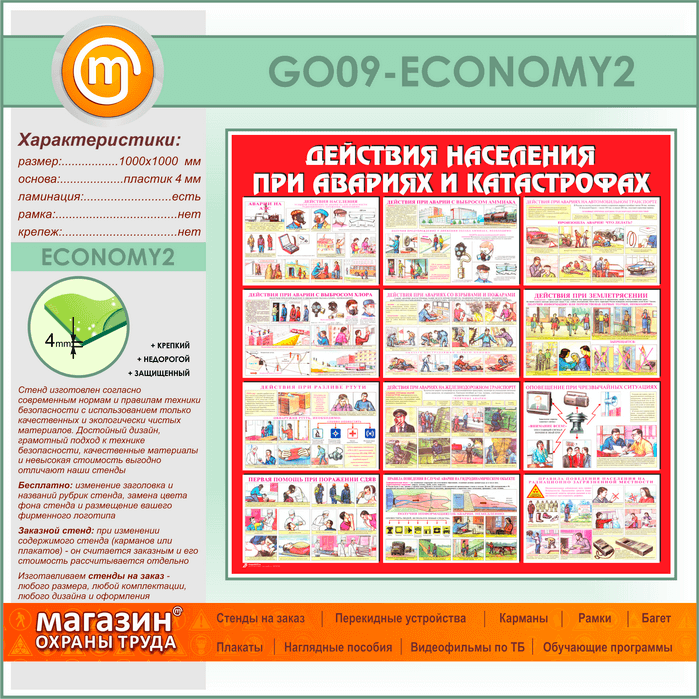 Стенд «Действия населения при авариях и катастрофах» (GO-09-ECONOMY2) в Нижнекамске купить