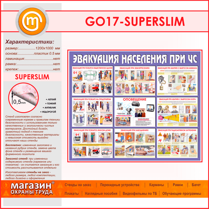 Стенд «Эвакуация населения при ЧС» (GO-17-SUPERSLIM) в Нижнекамске купить
