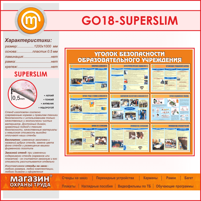 Стенд «Уголок безопасности образовательного учреждения» (GO-18-SUPERSLIM) в Нижнекамске купить