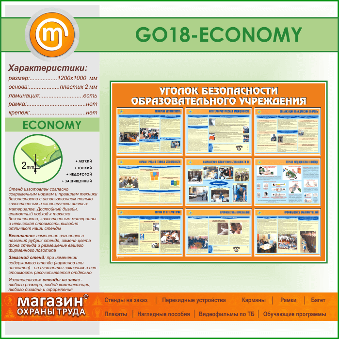 Стенд «Уголок безопасности образовательного учреждения» (GO-18-ECONOMY) в Нижнекамске купить