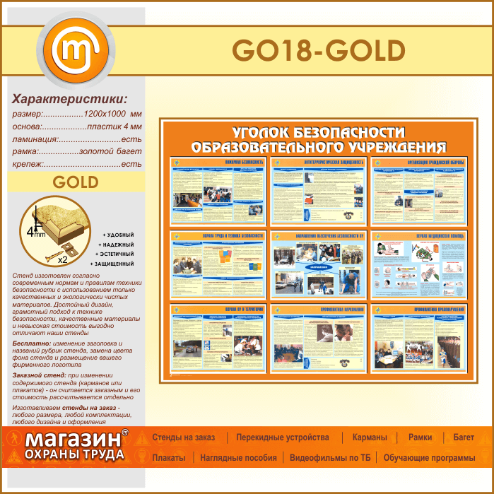 Стенд «Уголок безопасности образовательного учреждения» (GO-18-GOLD) в Нижнекамске купить