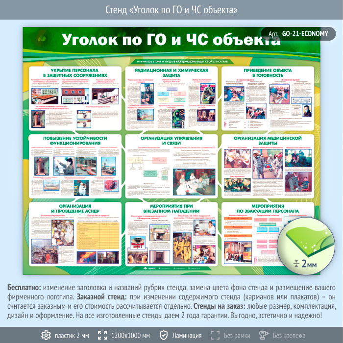 Стенд «Уголок по ГО и ЧС объекта» (GO-21-ECONOMY) в Нижнекамске купить