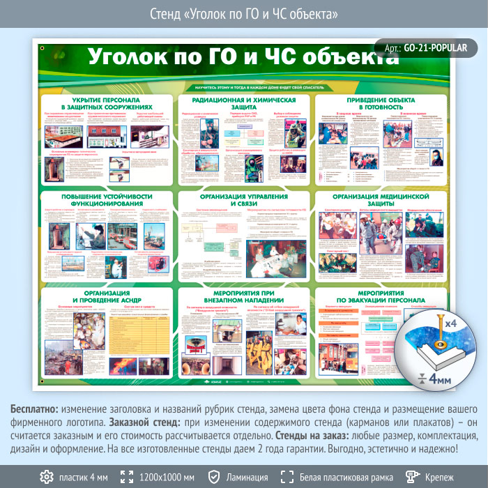 Стенд «Уголок по ГО и ЧС объекта» (GO-21-POPULAR) в Нижнекамске купить