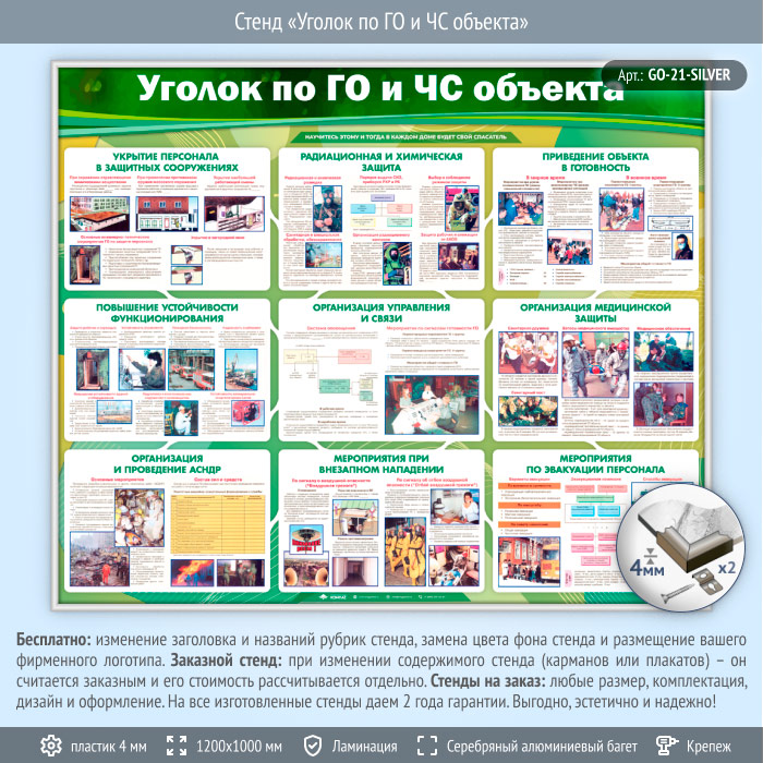 Стенд «Уголок по ГО и ЧС объекта» (GO-21-SILVER) в Нижнекамске купить