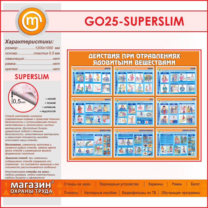 Стенд «Действия при отравлении ядовитыми веществами» (GO-25-SUPERSLIM) в Нижнекамске купить