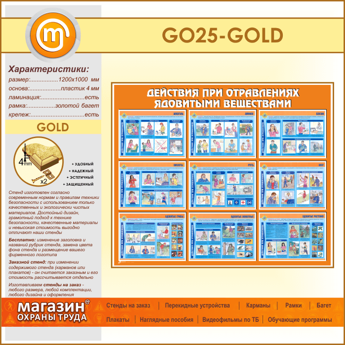 Стенд «Действия при отравлении ядовитыми веществами» (GO-25-GOLD) в Нижнекамске купить