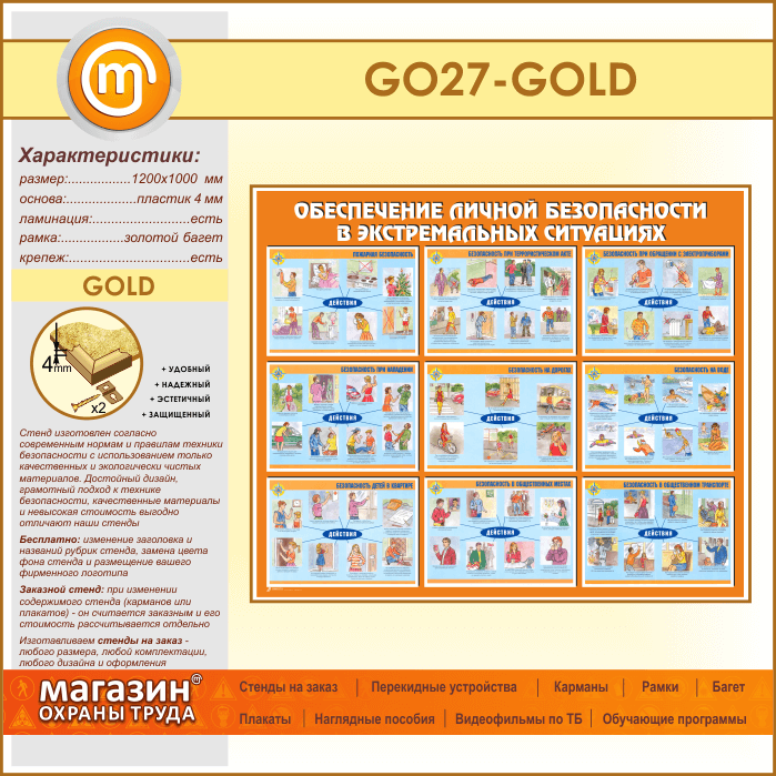 Стенд «Обеспечение личной безопасности в экстремальных ситуациях» (GO-27-GOLD) в Нижнекамске купить