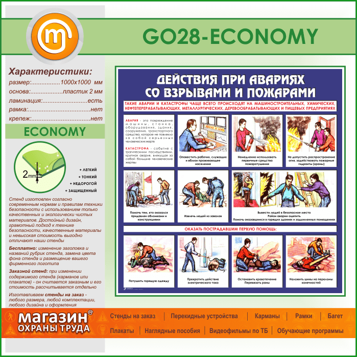 Стенд «Действия при авариях со взрывами и пожарами» (GO-28-ECONOMY) в Нижнекамске купить
