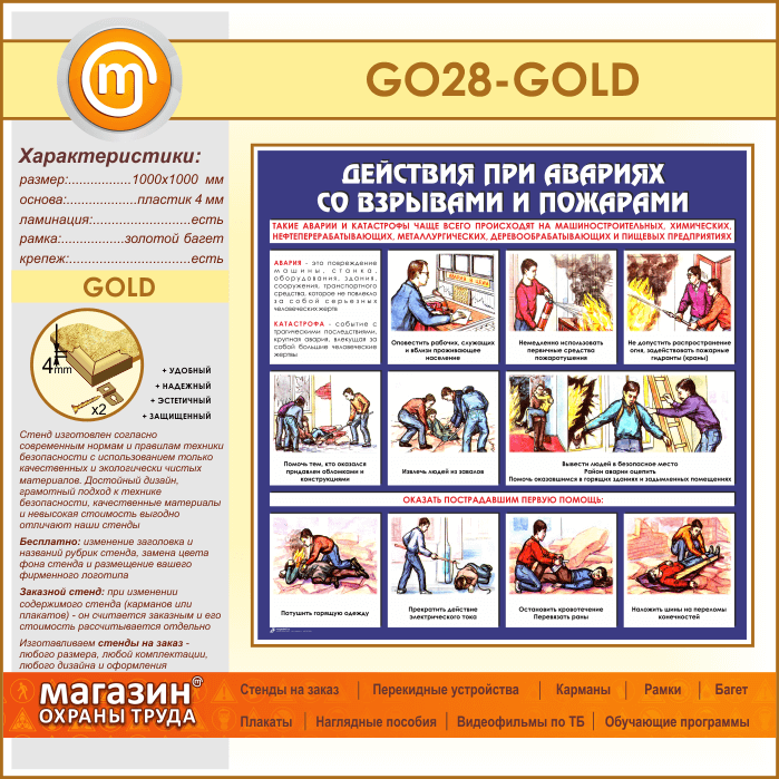 Стенд «Действия при авариях со взрывами и пожарами» (GO-28-GOLD) в Нижнекамске купить