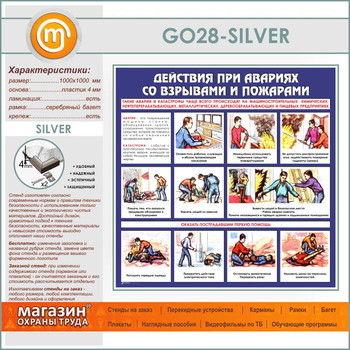 Стенд «Действия при авариях со взрывами и пожарами» (GO-28-SILVER) в Нижнекамске купить