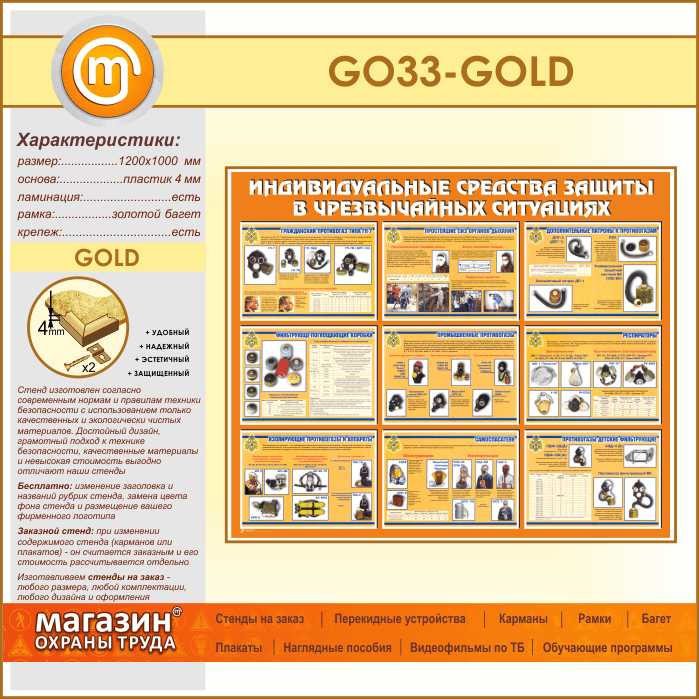 Стенд «Индивидуальные средства защиты в чрезвычайных ситуациях» (GO-33-GOLD) в Нижнекамске купить