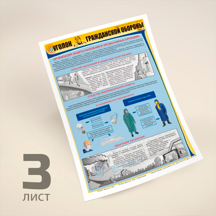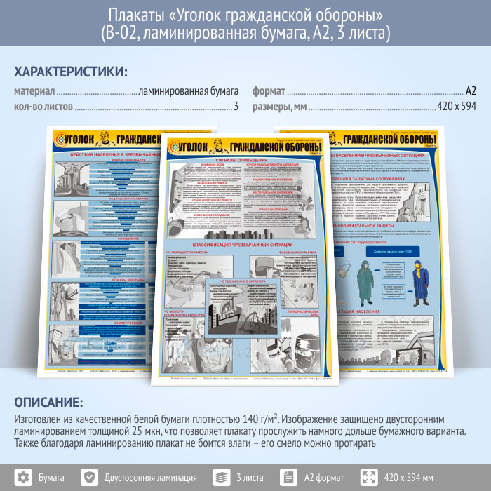 Плакаты «Уголок гражданской обороны» (В-02, ламинированная бумага, А2, 3 листа) в Нижнекамске купить