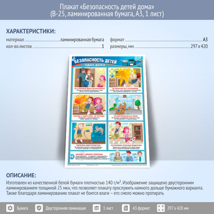 Плакат «Безопасность детей дома» (В-25, ламинированная бумага, А3, 1 лист) в Нижнекамске купить