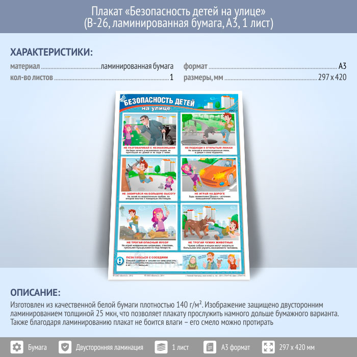 Плакат «Безопасность детей на улице» (В-26, ламинированная бумага, А3, 1 лист) в Нижнекамске купить